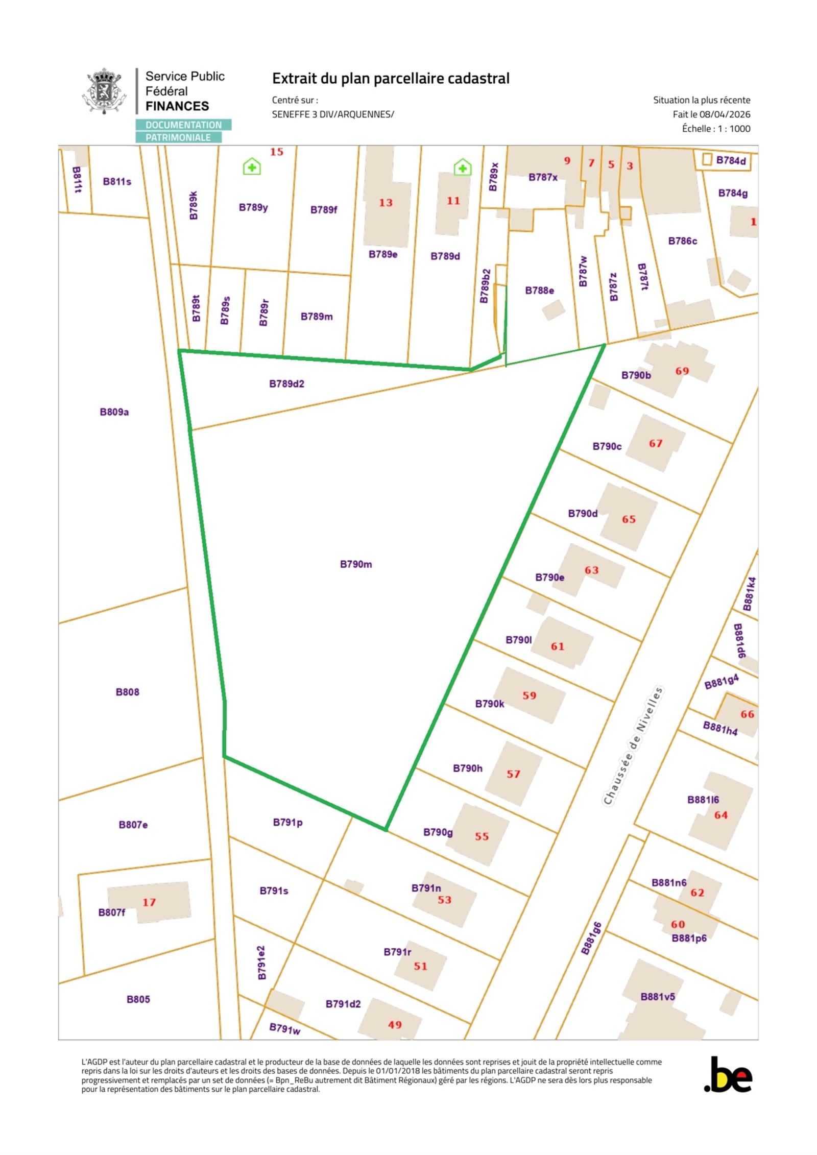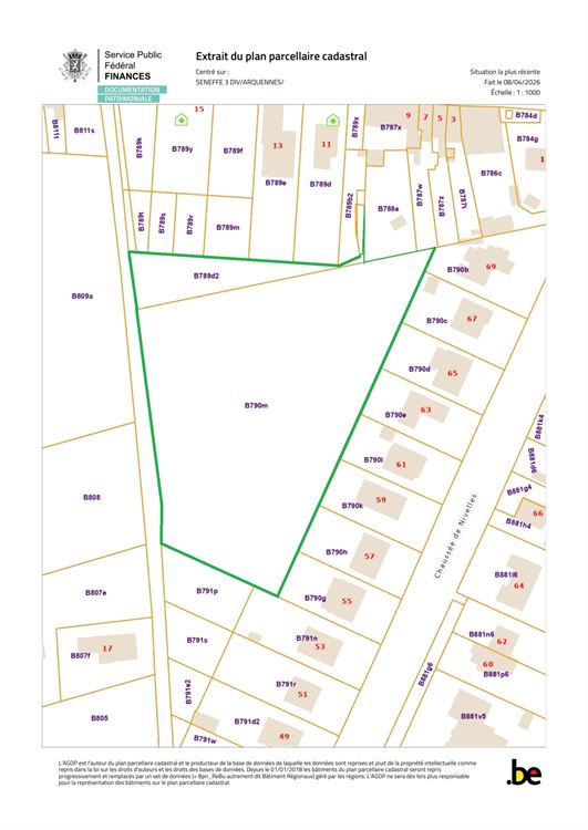 Op het platteland van Arquennesy, weiden kadastraal sectie B nummers 790M en 789/D2 met een totale oppervlakte van 80 are 29 centiares.